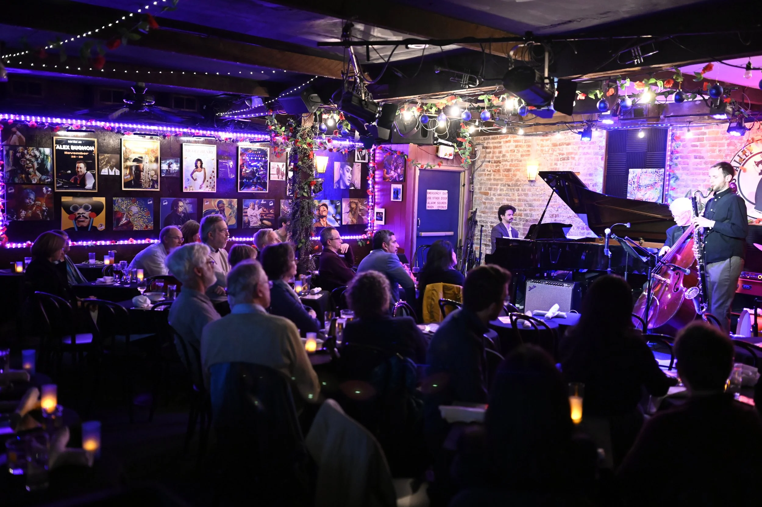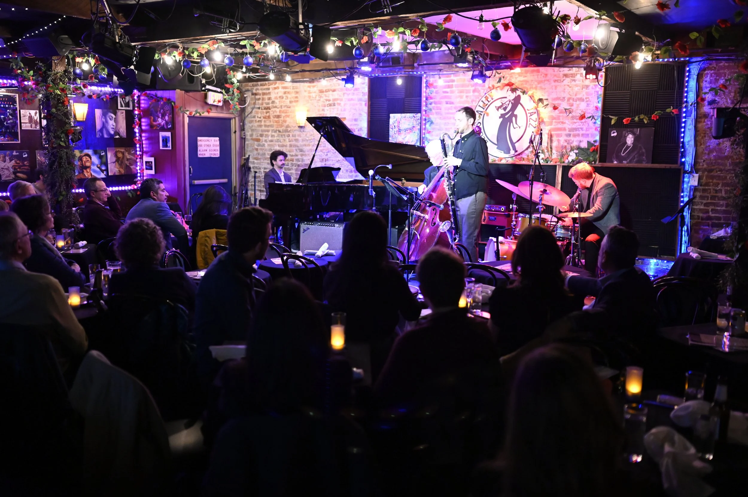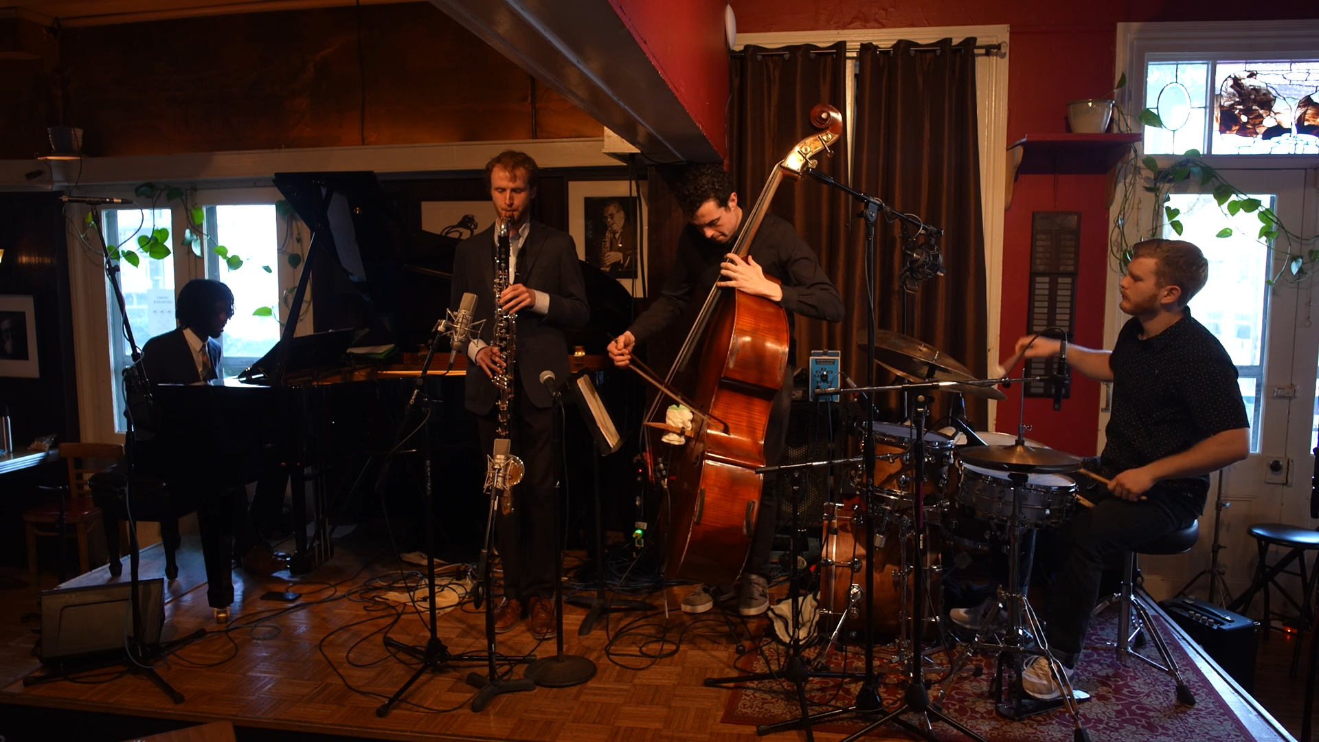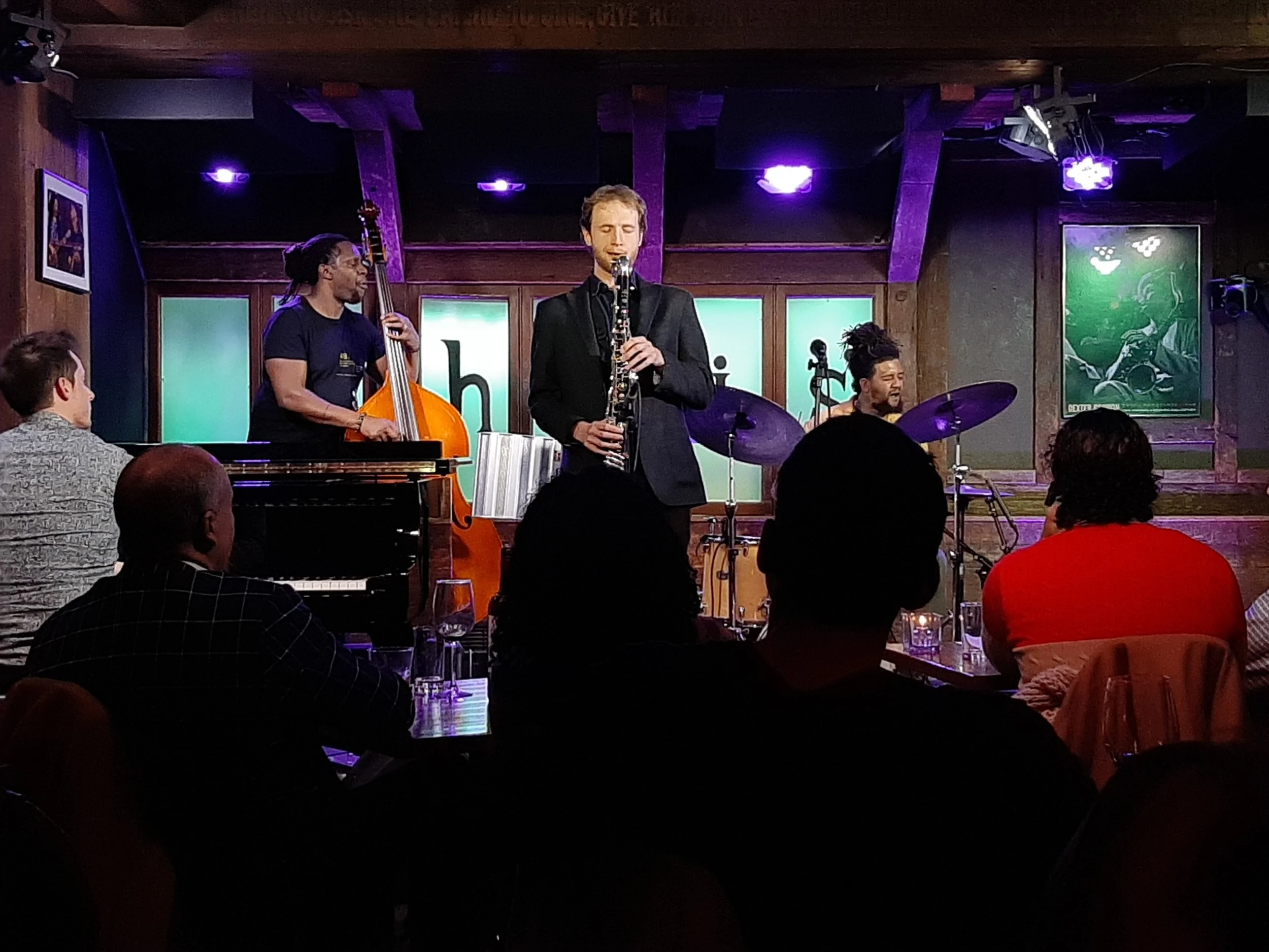 Mark Ligonde (bass) and Griffin (clarinet) performing live at SFJazz in January 2020 with the Oberlin Sonny Rollins Jazz Ensemble. Photo by Terrence McCarthy.