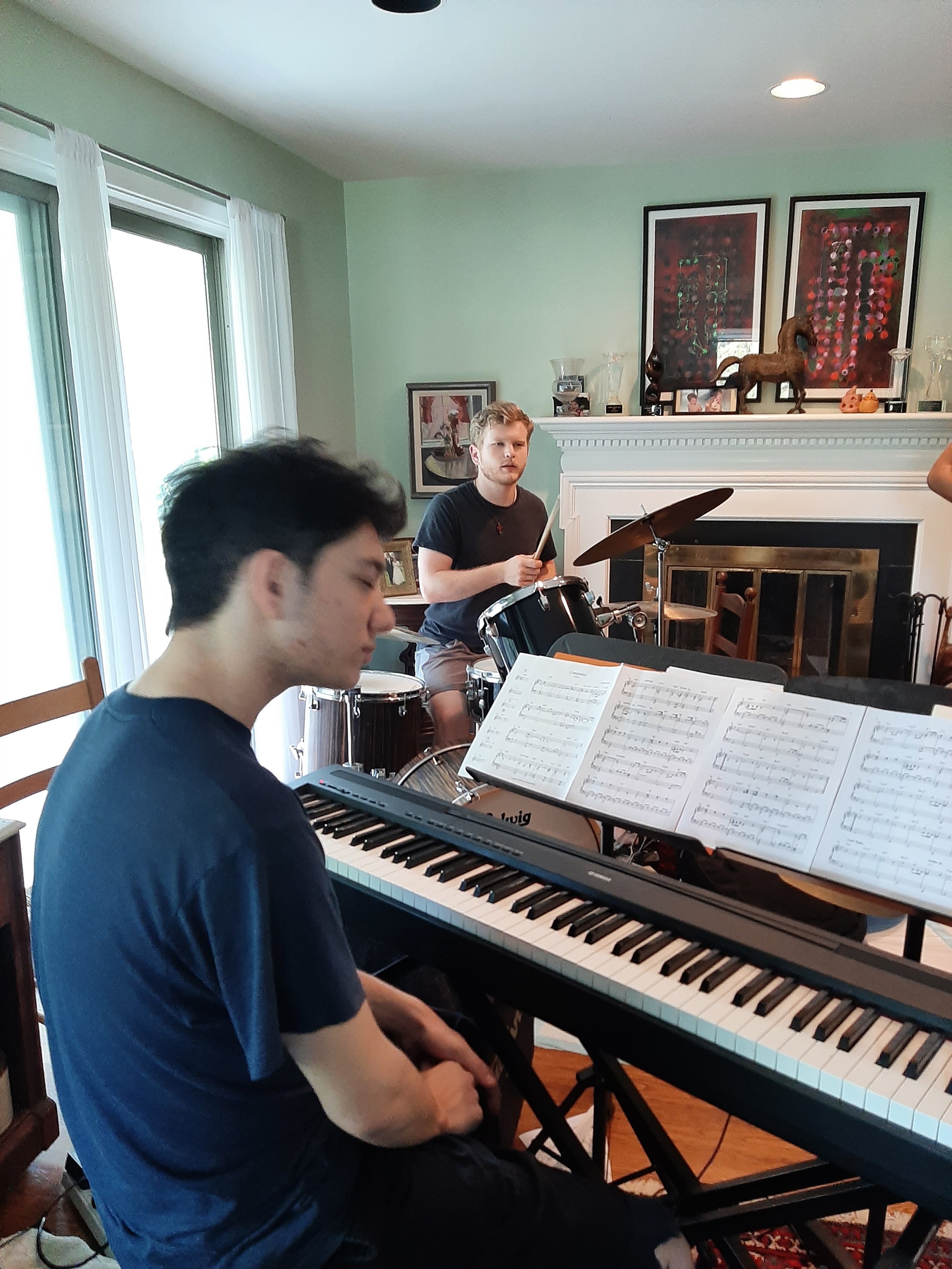 Abe Gold (piano) and Hugh Kline (drums) rehearsing in Irvington, NY. Photo by Lynne Woodard