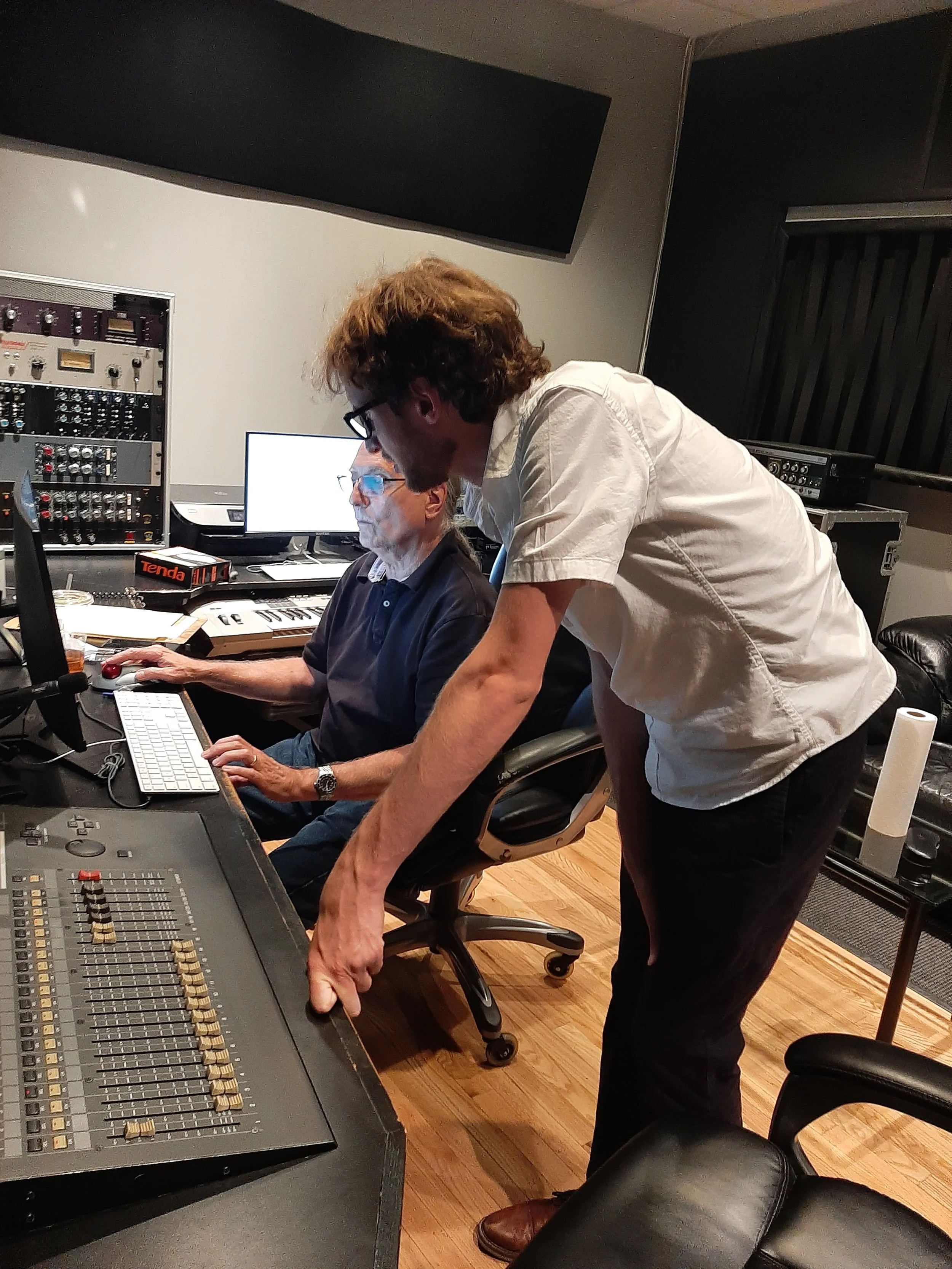 Mixing and mastering the ๐‘ช๐’๐’Ž๐’‘๐’๐’†๐’•๐’Š๐’๐’ album with Dave Darlington at Bass Hit Studios in NYC.