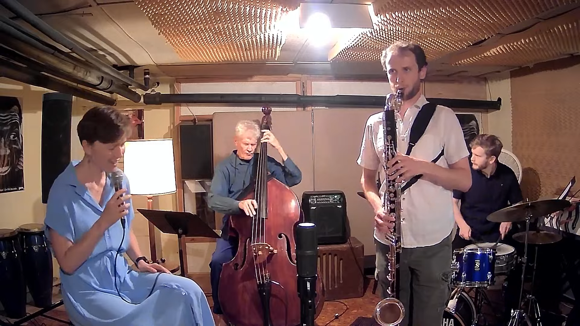 Rehearsing in Center Valley, PA in preparation for the recording of ๐‘ช๐’๐’Ž๐’‘๐’๐’†๐’•๐’Š๐’๐’. From left to right: Miles Gilbert, Georgia Heers, Deneen Jones, Griffin.